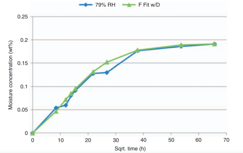 图7:绝缘材料试样在79%相对湿度下的菲克曲线拟合。