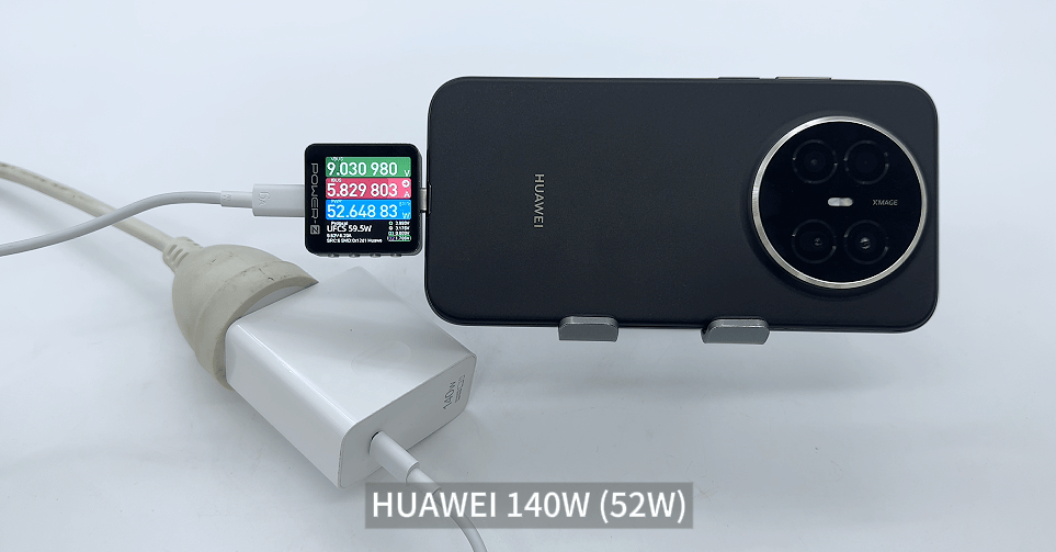 使用HUAWEI 140W充电器为华为Mate70 Air充电,实测功率为9.03V 5.83A 52.65W。