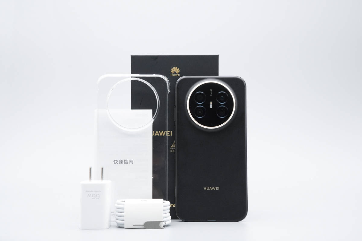 包装内物品除华为Mate 70 Air 手机外,另拥有66W充电套装、保护膜(出厂贴在手机上)、说明书、保修卡纸、取卡针和清水壳等。