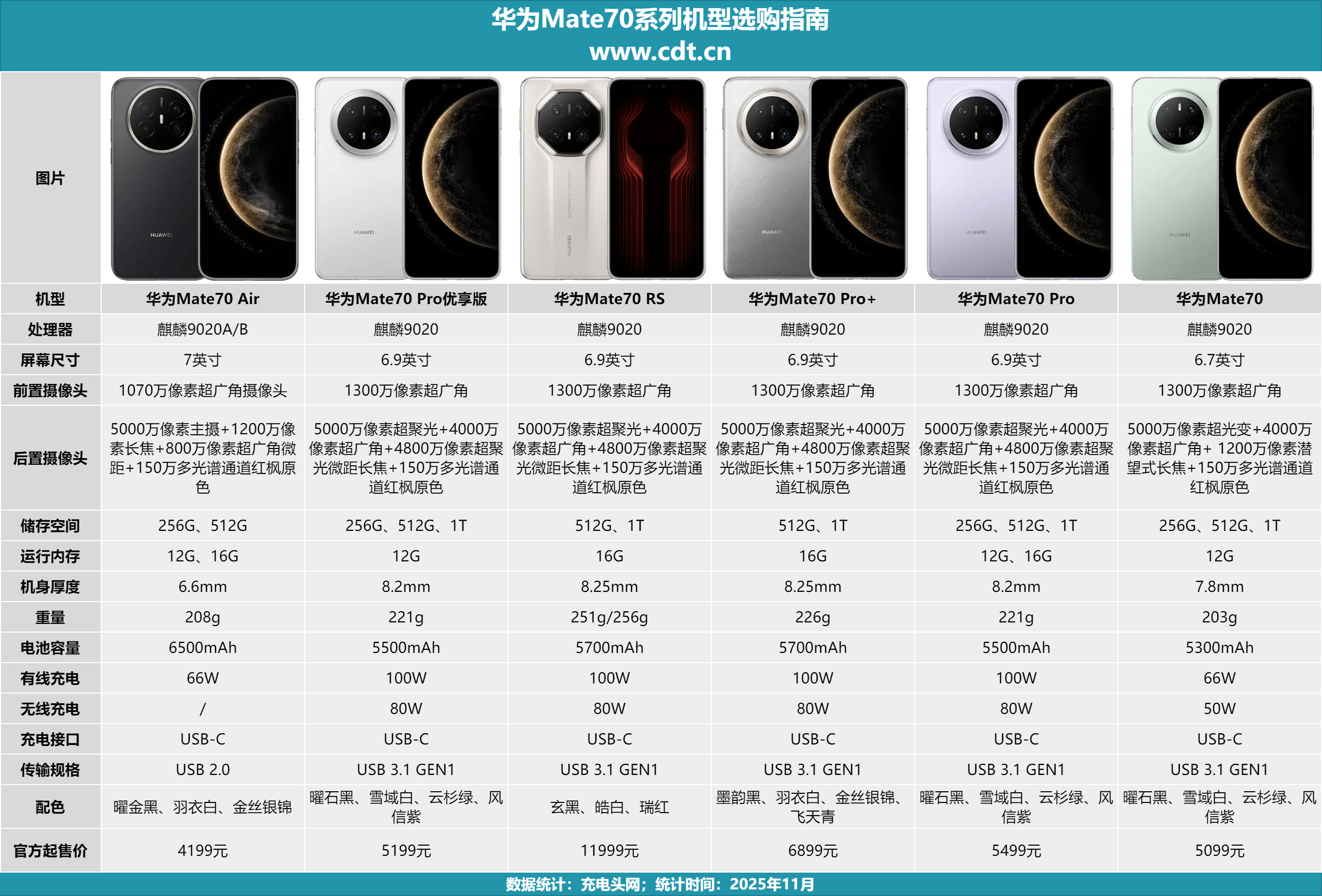 综合来看,华为 Mate70 Air 在保持 Mate 系列旗舰体验的同时,成功兼顾了轻薄手感与充电实用性,既填补了 Mate 系列的产品布局空白,也为追求轻薄体验的旗舰用户,提供了一个更贴合需求的选择,用户选购充电器时,若想体验极致充快充感受,可优先选择原厂充电器;第三方充电器的选择则是尽量选择支持UFCS融合快充协议的充电器,即可获得优秀的快充体验。