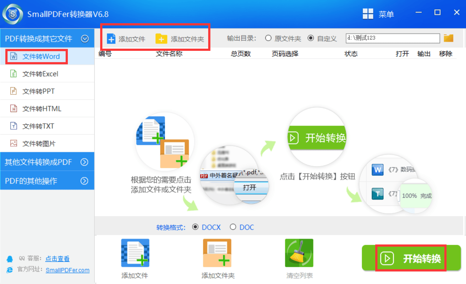 在选择好自己所需的功能外,下面需要通过自己专属的方式,将需要转换的PDF文件手动添加到软件当中。例如:需要转换的PDF文件数量太多,可以先将其转移至一个目录下,然后点击“添加文件”来完成。之后,需要设置一下具体的转换功能菜单,确认没有需求的前提下,点击“开始转换”即可解决问题了。