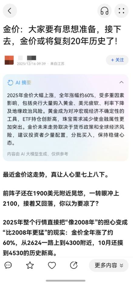 比如以前看这种年度盘点或者长篇深度好文,动不动就几千字,还没读完午休就结束了。现在有了浏览器资讯助手,点进文章,标题下面直接就有个“AI摘要”。就像有个小秘书,把几千字的长文进一步快速提炼成一句话核心重点,那种“从从容容、游刃有余”的掌控感立马就来了。