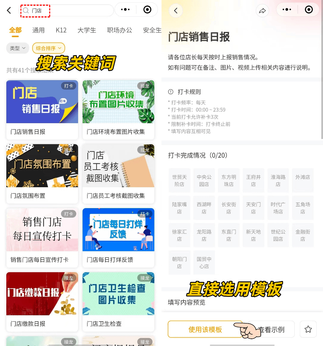 总部或店长在接龙管家发个接龙任务,直接用现成的 “门店销售日报” 模板,改改就能发。
