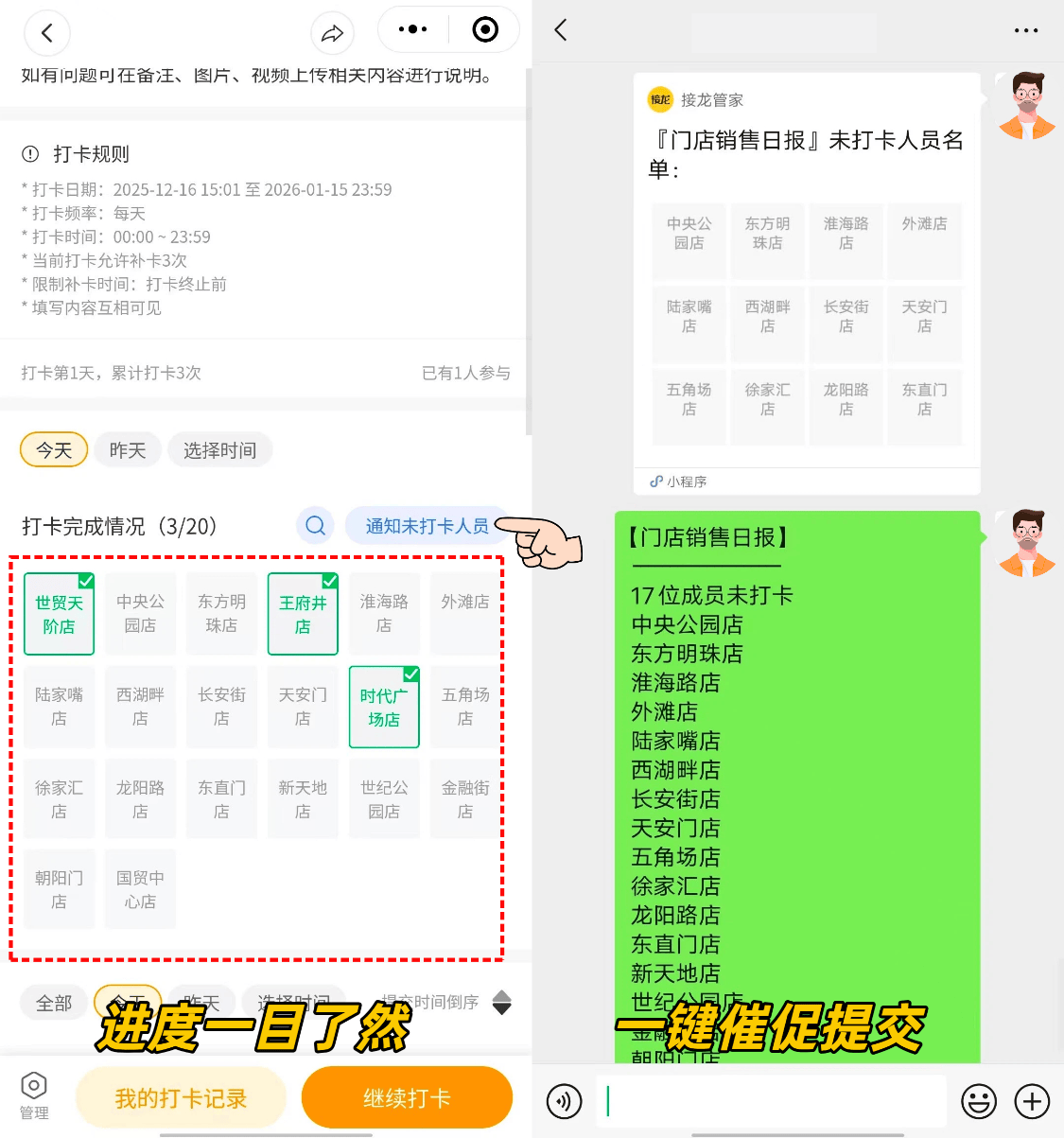 不管是管理者还是员工,都不用下载。搜“接龙管家” 小程序,点开就能用,手机内存稳稳的。