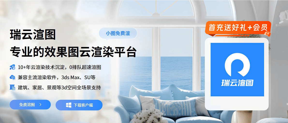 做效果图?试试 瑞云渲图 —— 新人前2单免费,首充10得20,0.03元/分钟起,单图封顶20元;