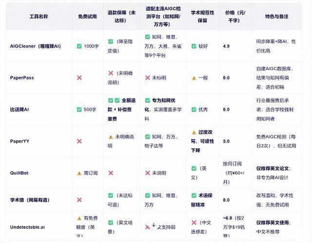 自己要用哪个工具降Ai,要结合处理质量、平台兼容性及售后服务综合评估。如果一个降AI工具价格显著低于市场均值,没有免费试用、不支持退款、只认可他们自己平台的AI查重率,那再便宜也不要用。反之,高价未必等于高效,应优先选择提供透明计价、按需付费且支持效果验证的服务模式。