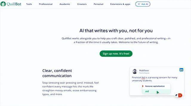 简介:QuillBot是一款国际知名的英文文本改写与润色工具,被视为该领域的“祖师爷”之一。它提供多种改写模式,如Standard(标准)、Fluency(流畅)、Formal(正式)等,能有效优化句子结构和用词。