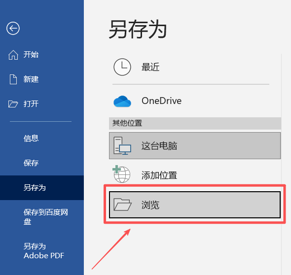 2、弹出新的界面后,选择【另存为】→【浏览】。