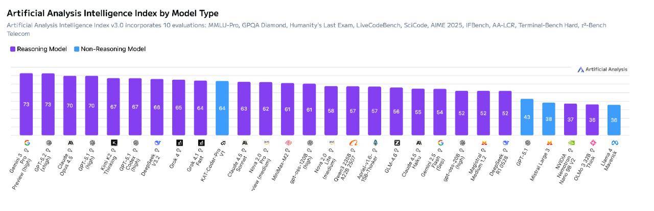 据快手KwaiKAT,近日快手编程模型KAT-Coder-Pro V1 迎来1210版本关键迭代,本次更新聚焦Agentic Coding领域核心能力升级,旨在为全球开发者提供更高效、更贴合业务场景的 AI 编码辅助体验。凭借此次迭代,KAT-Coder-Pro V1 在权威评测机构 Artificial Analysis(AA)榜单中表现亮眼,以 64 分综合评分跻身全球总榜TOP 10,在 Non-Reasoning Model 中获第一名。