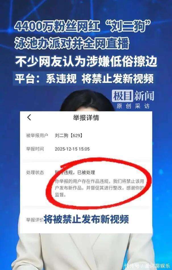 更让人担心的是,这场直播居然持续了将近三个小时,从晚上十点一直拖到第二天凌晨。要知道,刘二狗的粉丝数量庞大,其中不乏未成年人,这样的内容对青少年的影响非常不好。很多网友看完录屏后都忍不住开骂:太辣眼睛了!、这和软色情有什么区别?在网友的不断举报和媒体追问下,快手平台终于在12月16日做出回应,确认刘二狗的账号存在违规行为,并给出了处理结果。结果你猜怎么着?处理方式仅仅是禁止发布新作品,也就是俗称的禁言。至于禁言多久,平台没有明确说明,而且之前发布的视频仍可观看,账号也能正常关注。这种高高举起,轻轻放下的处罚,立刻引起网友们的强烈不满。许多人吐槽,这种处罚力度简直是罚酒三杯,完全不痛不痒。相比之下,平台对一些没有多少粉丝的小主播,一旦出现类似低俗内容,举报往往会迅速生效,甚至直接封号。怎么到了刘二狗这种顶级大V,这场直播竟然能安然无恙地进行三个小时,中途举报似乎也没什么作用,最后的惩罚还这么轻?这很难不让人怀疑,平台是不是在搞双重标准,流量大就等于免死金牌?