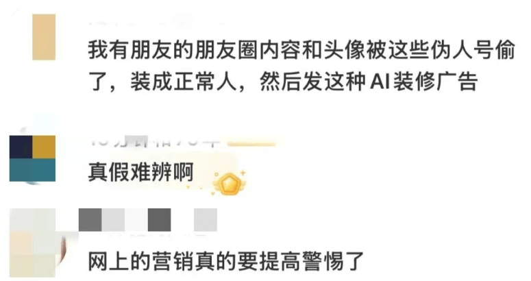 “眼下业内商家利用AI图片获客的情况十分常见。这些商家借助第三方工具,短时间内生成大量AI夫妻图片,再打着分享装修经验的名义进行营销,成本几乎为零,而传统请模特拍实景至少要花费数千元。”