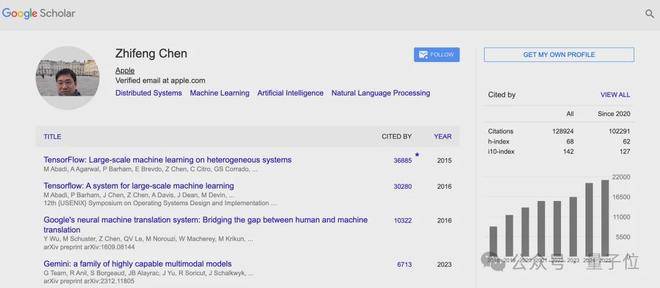 而且TensorFlow早期核心系统论文、Gemini等,都有Chen参与的身影。
