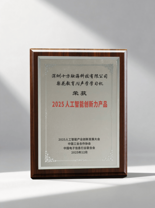 在这场汇聚行业精英、展示前沿成果的盛会上,十方融海梨花教育推出的梨花AI声学学习机脱颖而出,凭借卓越的技术创新与系统化的适老化设计,荣膺“2025人工智能创新力产品”称号。这一荣誉不仅是对梨花教育在AI声学领域领先地位的有力彰显,更体现了其在银发经济与成人文教市场的深远战略布局。