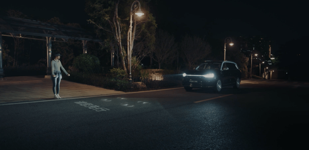 这种协同创新体现在技术的全链条突破:硬件层面,问界M9搭载的双灯模组单灯像素超130万,双灯合计260万,可实现超高分辨率动态投影,近距离投影距离仅3米,解决了车库投影易干扰对向车辆的行业痛点;软件算法层面,通过自适应算法与环境感知传感器的结合,实现高精度ADB的精准遮蔽、光毯的道路增强与轨迹预测等功能,达成“人-车-环境”协同感知。