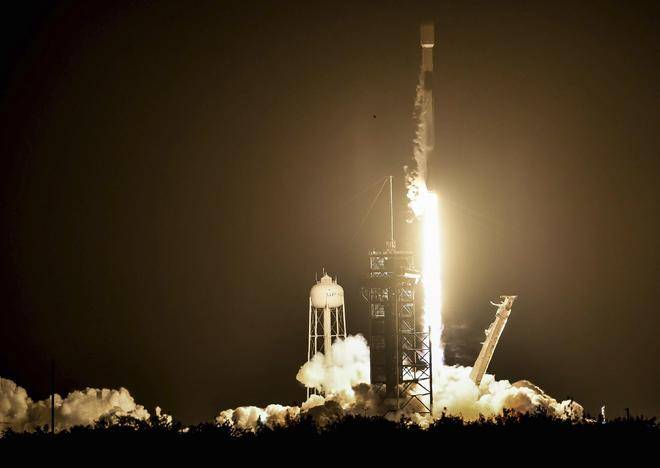 2024年3月15日,“猎鹰9”火箭从美国佛罗里达州肯尼迪航天中心发射升空。美国太空探索技术公司当天用“猎鹰9”火箭将23颗“星链”卫星送入太空。新华社/美联