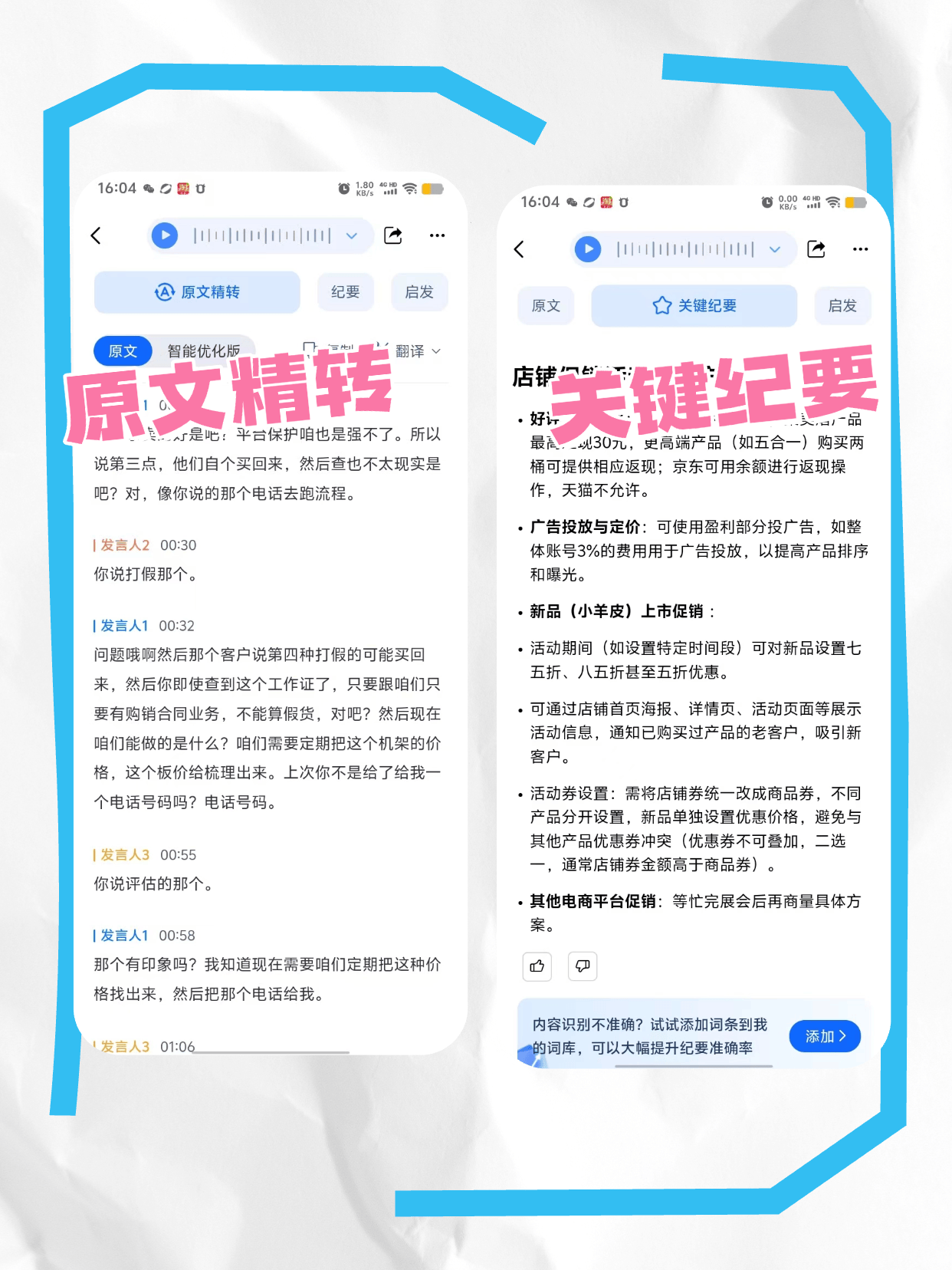 最近和做产品的老陈吃饭,他吐了半小时苦水——上周连开三场用户调研会,每场两小时,回去整理纪要花了整整一天,结果还漏了用户说的“安卓端支付卡顿”核心痛点,导致需求文档写错,研发做了两周才发现,白白返工。其实不止老陈,我接触的产品技术同学几乎都在吐槽会议记录这事儿:项目讨论会上研发聊的技术术语被转写成“外星文”,需求讨论会跨部门发言混乱得像“菜市场”,技术方案会的关键风险点藏在几百行文字里找不着……每次整理纪要都像在“拆盲盒”,要么错漏百出,要么耗时耗力,最后还是得加班补坑。
