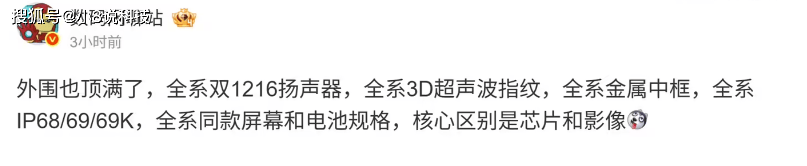 差别只在于芯片(虽然都说是骁龙8至尊版,可能频率有差异)和影像系统。